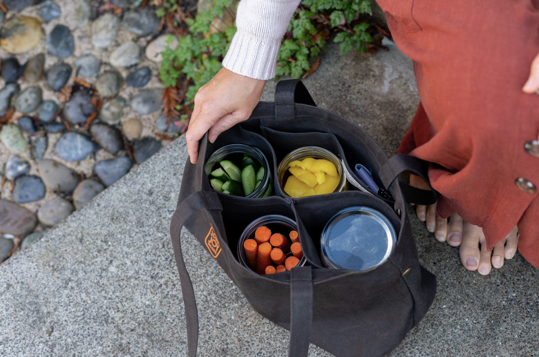 “The Daily Jar Tote” is built to divide and carry your jars on the go.